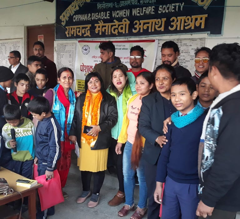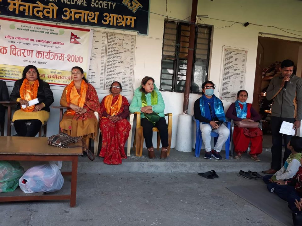 राष्ट्रिय संगितकर्मी संघ रुपन्देहीले अनाथ आश्रममा सहयोग गरेको छ । तिलोत्तमामा रहेको रामचन्द्र मैनादेवी आश्रमका ९ जना विद्यार्थीहरुलाई न्यानो कपडा स्कुल पोशाक वितरण गरिएको हो ।